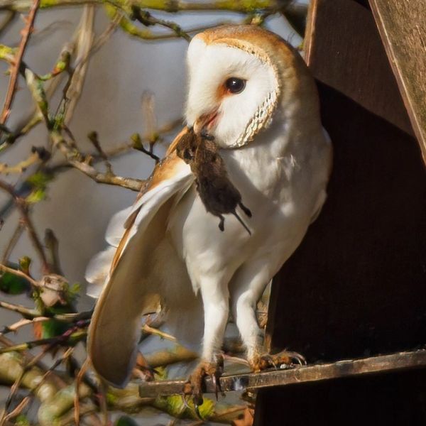 Since 2010, we have installed over eighty nest boxes on the farm both under our own initiative and guided by The Hawk and Owl Trust. 11 Barn Owl, 2 Little Owl, 2 Kestrel, 41 House Martin, 7 Swift,10 Tree Sparrow, 6 Tit, 1 Woodpecker and 10 Dormouse boxes are in-situ, most of which have been used by the target species although we have had Stock Doves, Mandarin Ducks, squirrels and hornets take up residence. It is not uncommon to see well over one hundred individual House Martins fledged from the 17 artificial and handful of natural nests under the eaves of our Oast house gathered on the roof warming themselves in the autumn sunshine prior to their winter migration south.